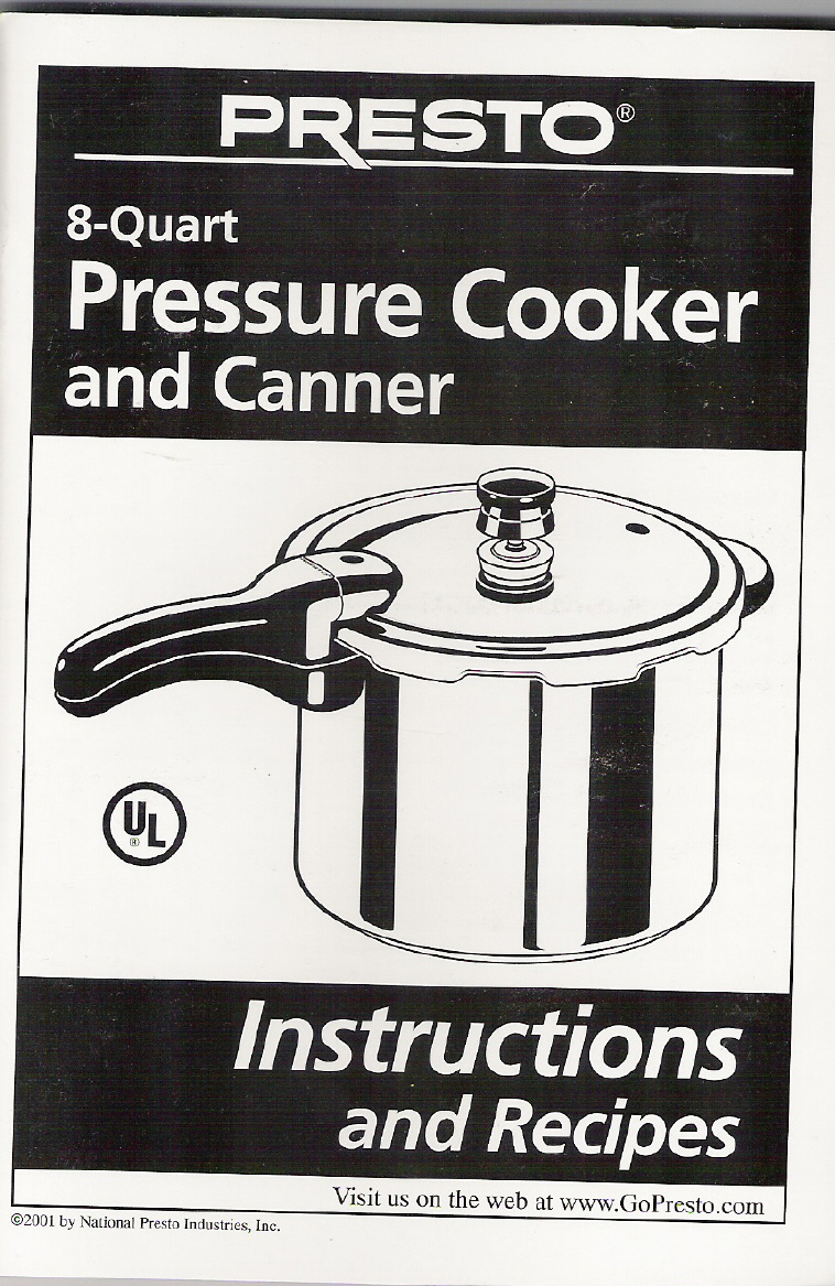 Replacement Instruction and Recipe Book for Presto Pressure Cooker models: 128202